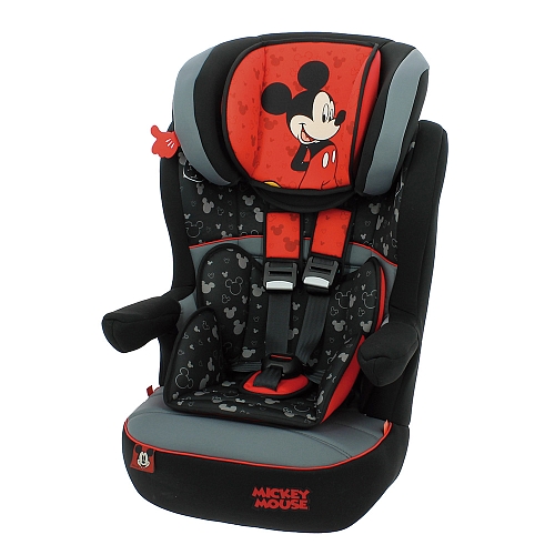 La silla de coche Micky Mouse es para el grupo 1-2-3 (De 9 a 36 kg). Tiene reposacabezas ajustable en altura, protección lateral para máxima seguridad, funda acolchada extraíble y reposabrazos regulables.
